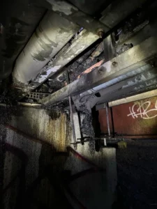 Cette action était en solidarité avec les personnes qui ont été privées de leur liberté par l’Etat que nous haïssons tous-tes. Le soi-disant Etat constitutionnel, dont le but est de maintenir les vies confortables et destructives du monde de riches majoritairement blancs au nom de la justice, a laissé ses victimes êtres choisies par des flics pourris, et elles sont maintenant enfermées derrière ces barreaux. Pour que les gens se sentent un peu moins seul-es, nous avons tiré des feux d’artifice et nous leur avons fait signe dans la transition de 2025 à 2026.