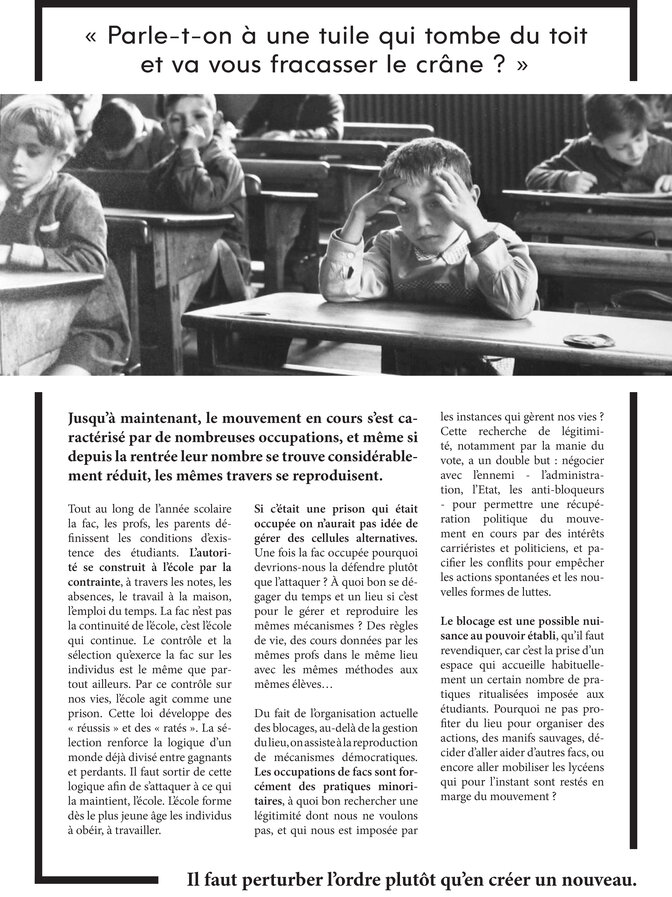 → Pour ce qui est de la « direction d’enquête » : il s’agit pour les procureurs de la république de s’assurer que l’organisation des flics leur permette non seulement de nous réprimer physiquement mais aussi d’assurer une plus grande efficacité de la répression judiciaire.