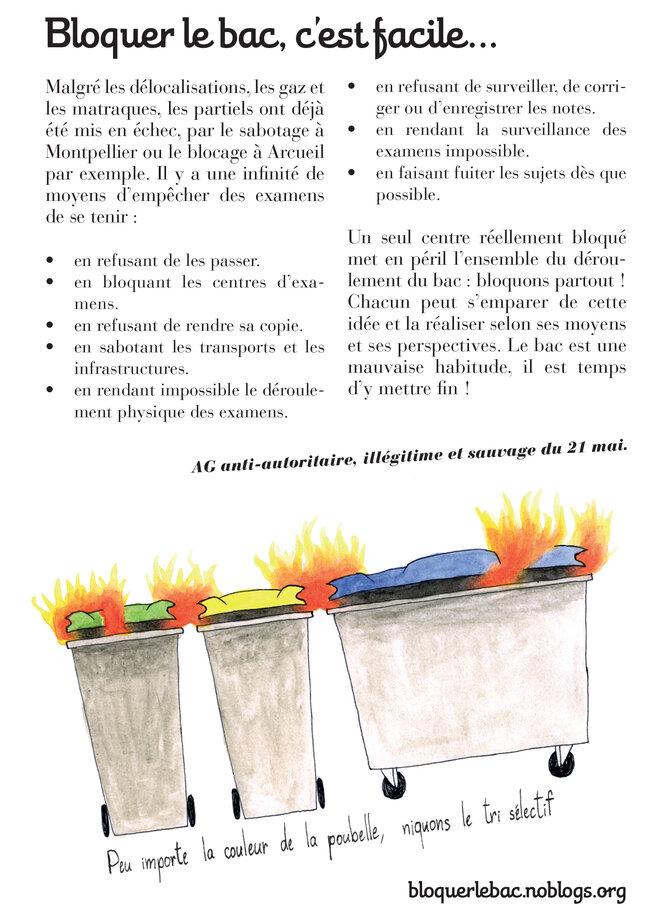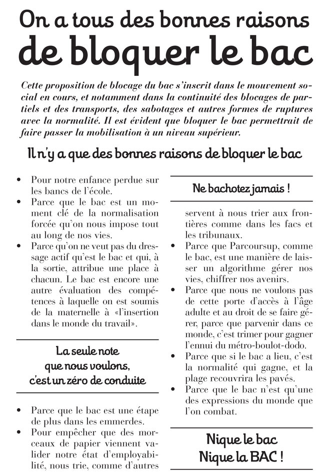 Parce qu’on en a eu marre d’accepter le chantage (comme avec la mafia : « si tu paies, on te protège ; sinon, ce qui t’arrivera sera de ta faute) ; marre de courber l’échine, de baisser la tête, de ravaler notre rage et d’accepter sans résister le pouvoir de l’État ; marre de se laisser faire dans un truc qu’on appelle encore « une lutte », semble-t-il de plus en plus pour le spectacle et la plus-value symbolique que ça rapporte, à mesure que les années passent.